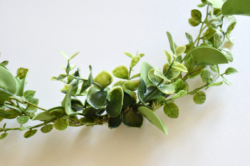 On va continuer avec les feuilles mais cette fois ci des petites tiges d'eucalyptus un peu plus foncé que les précédentes, et on va cacher la jointure du lierres.